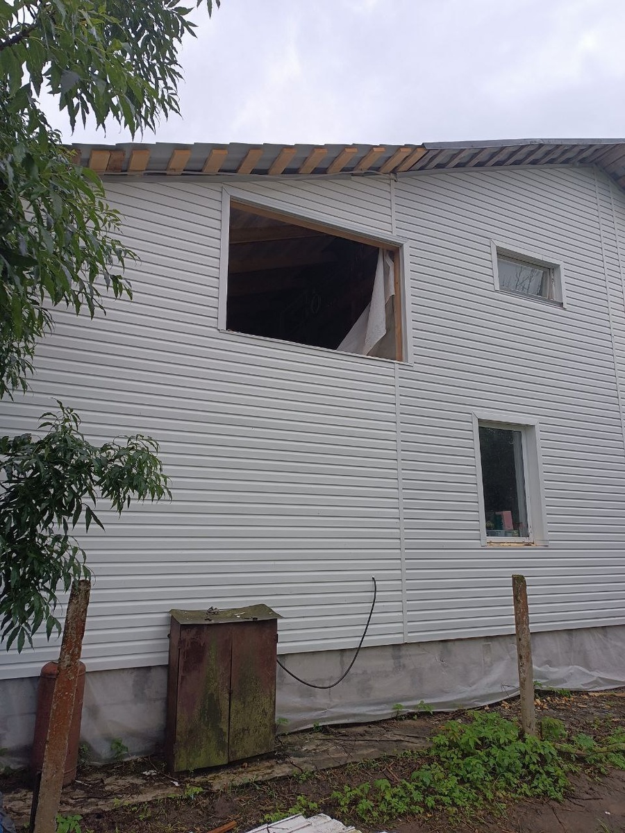 Одна сторона дома уже утеплена и зашита.Дима выставил вчера леса на второй стороне.Погода вносит свои коррективы , целый день проливает теплый летний дождик.Воздух не становится легче, высокая влажность температура +27, душно. Теперь каждый вечер с поля поднимается туман.В нашей комнате ещё нет дырки под окно, дышать очень тяжело, уснуть тоже сложно. Очень надеюсь , что наши дырявые стены со стороны моей комнаты поспособствует поступлению свежего воздуха, вот где действительно порадуешься тому , что утеплитель упал. По материалу я скажу сейчас при ремонте и строительстве надо сразу закладывать чуть ли не двойной плюс.Хороший качественный материал очень дорогой, а бюджетный очень плохого качества Выходим из ситуации, хоть и надо ещё покупать много, сайдинг старый который не сильно ломан моем с белизной.