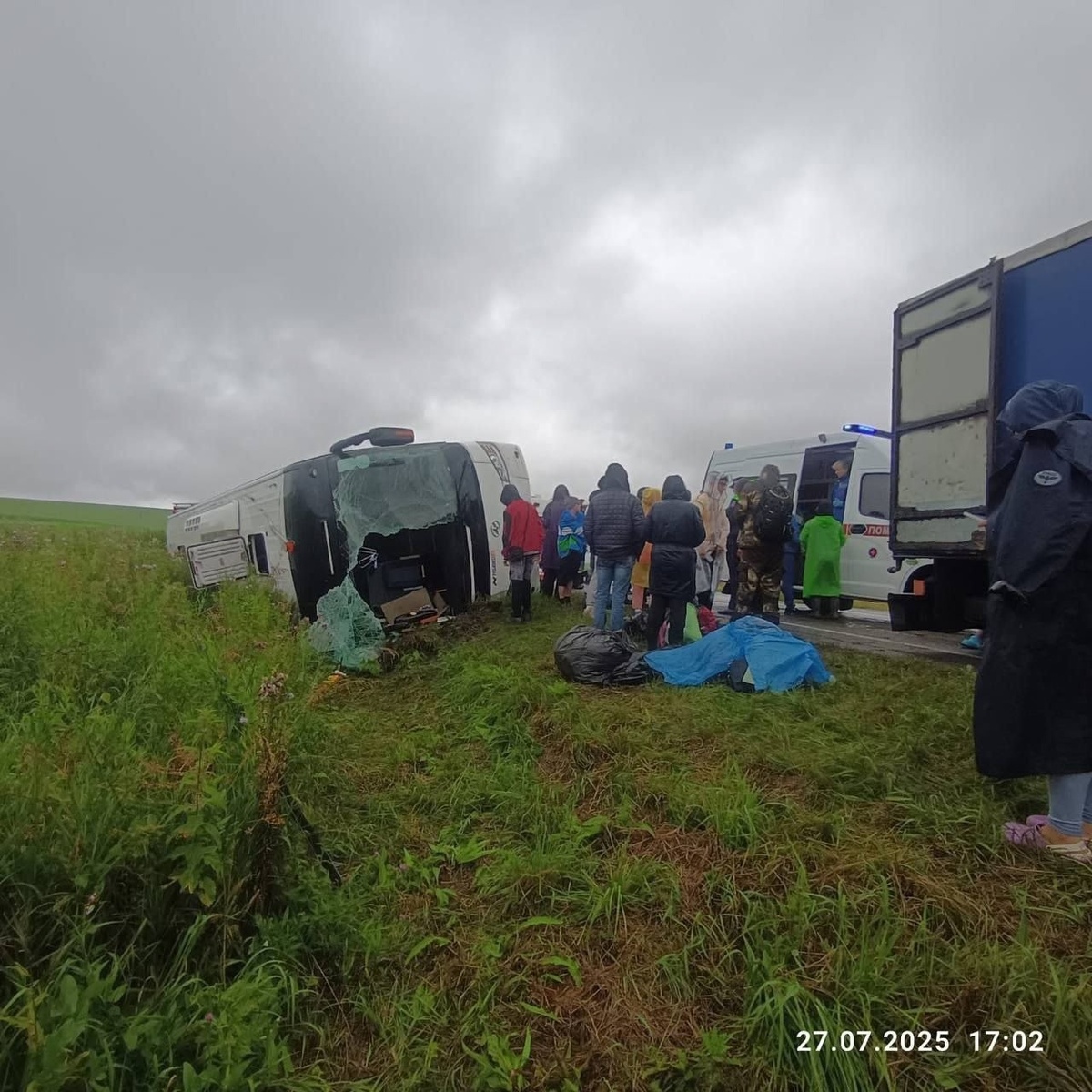 Как стало известно, автобус перевозил экскурсионную группу из столицы Удмуртии Ижевска. За рулем находился 38-летний водитель. В какой-то момент в условиях дождя он не справился с управлением и совершил съезд в кювет с последующим опрокидыванием. В салоне пассажирского транспортного средства находилось 40 человек, в том числе 7 детей.
