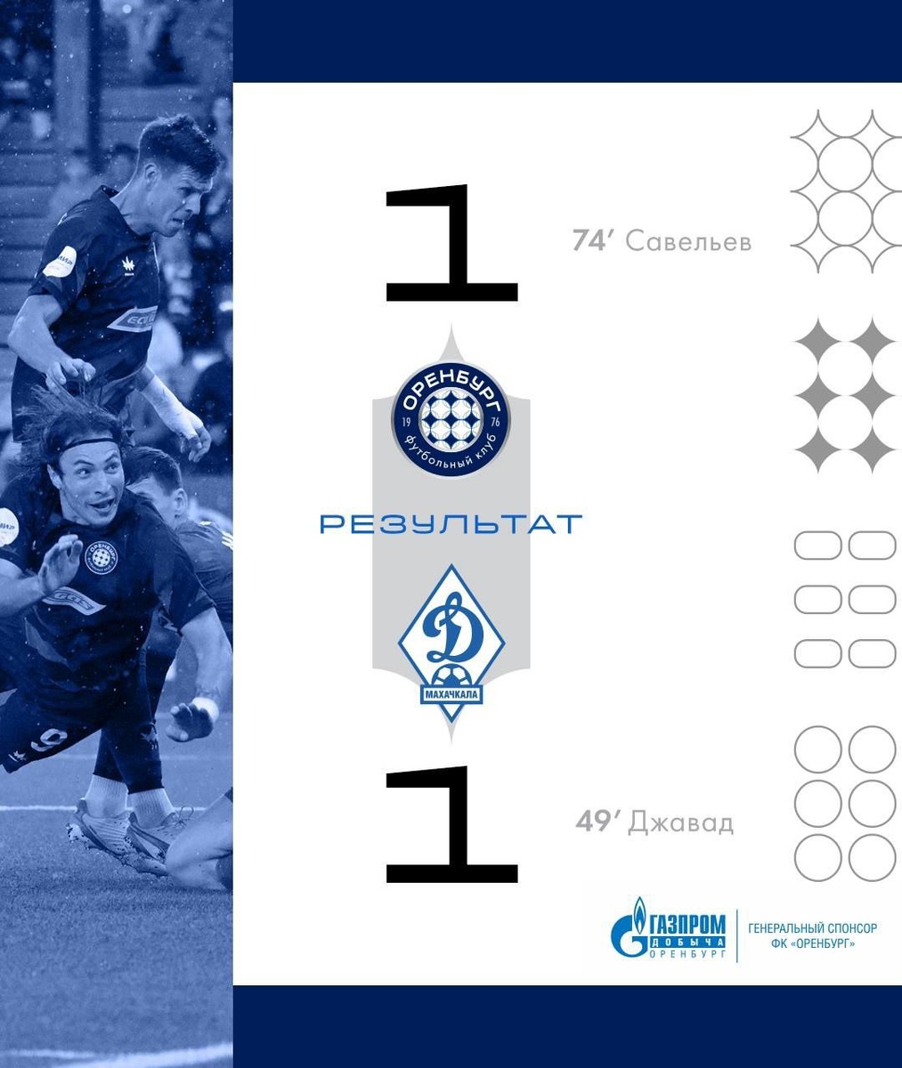 «Оренбург» и «Динамо» сыграли вничью со счетом 1:1 Следующий матч — в Казани с «Рубином».