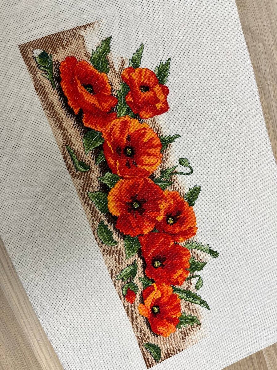 От старта до финиша 6 лет… Всем привет с Вами Анастасия и естественно я с финишем этих красивенных маков от Anchor ⚓️ Начинала работу по великой любви к сюжету. Помню как сегодня..натянула первый раз ну раму, хотела попробовать вышивать на раме из центра. На схеме нашла тот самый значек из середины картины и начала. Но так как я была не очень опытной в вышивании, сотворила непростительную ошибку, закрывая крестики в разном направлении в пределах одного символа. Через некоторое время - распорола и повредила в самом сердце канвы участок самой ткани. Подглядела что нужно сделать и начала быстро уже на круглых нурге 21 см закрывать дырень. Все успешно закончилось, это был 19 год. В 20м году продолжала понемножку отшивать по мягонькой канве уже по электронной схеме. Разорилась тогда на Сагу, когда поняла, что схема к макам - сломай мозг и выколи глаза. Схема ч/б, значки схожие есть и как бы ты не старался, верным делом шлепаешь ошибочку. Самый легкий отшив был в крестиках.
