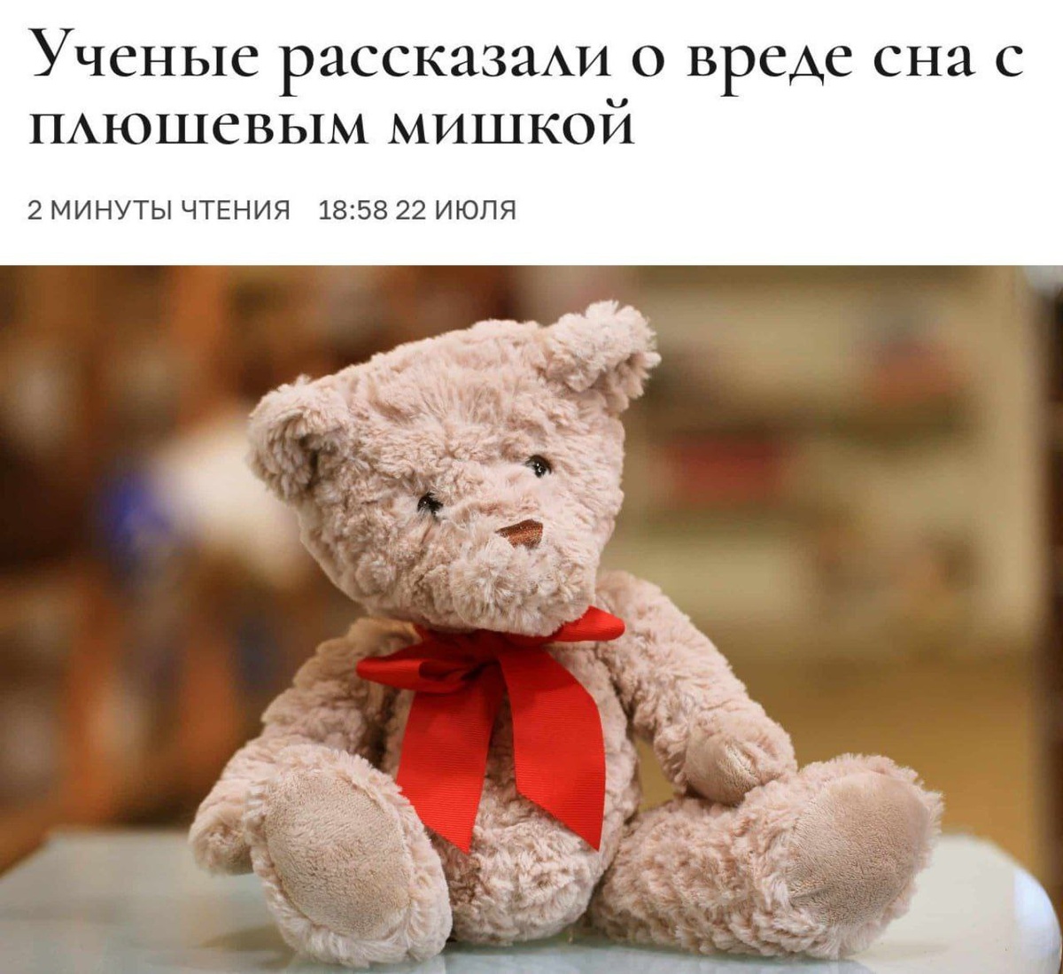 Сон с плюшевой игрушкой вредит здоровью — ученые. Виновниками стали формальдегид и антипирены, которыми пропитывают ткани для несминаемости, устойчивости к грязи и невоспламеняемости. Оба этих вещества раздражают кожу и слизистые и провоцируют развитие аллергии. Также лучше избегать линяющие игрушки и игрушки с клеем. Плюшевый мишка не оценит эту новость.
