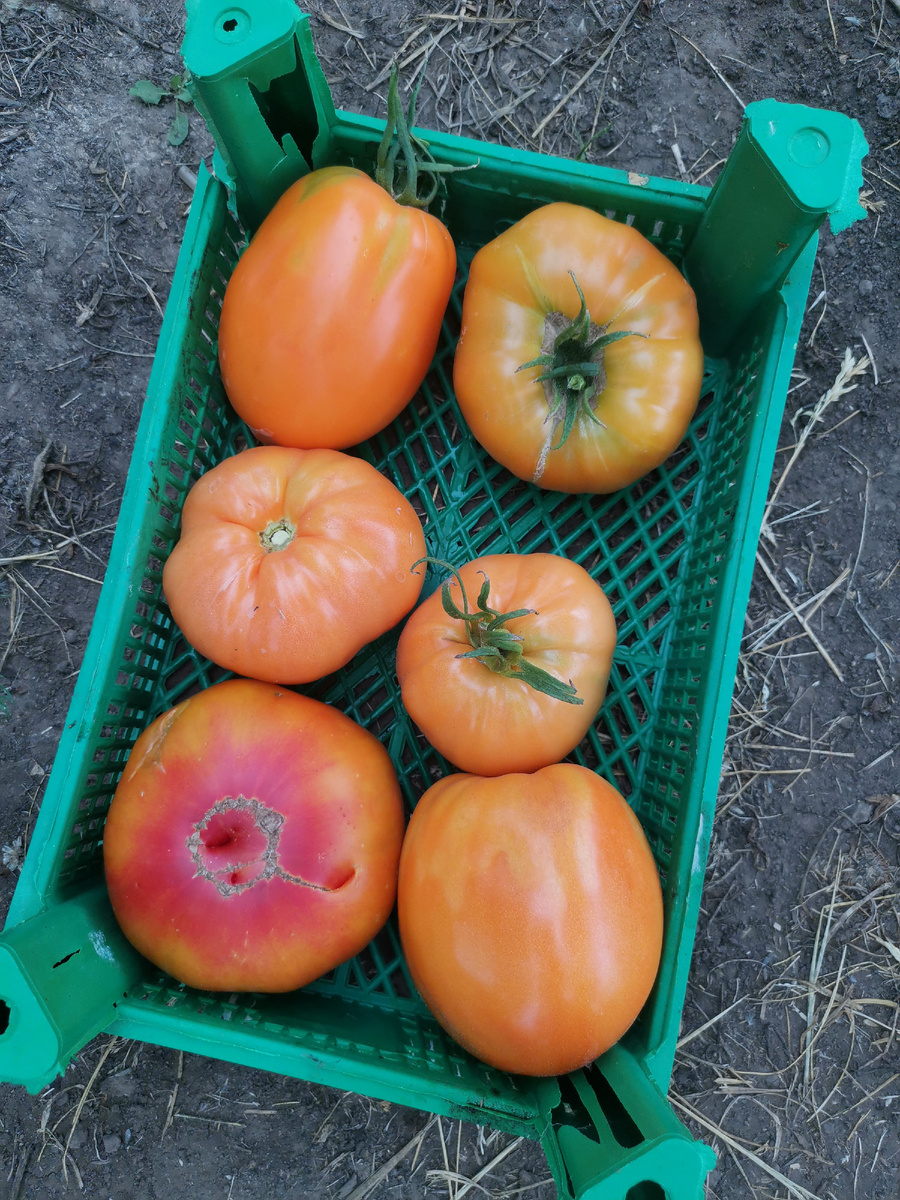 Кто помнит, как я громогласно и неоднократно уверяла, что желтую помидору я не очень люблю в салатах? Так вот. Вот: Это урожай салатных томатов. Медовый салют и Медовый толстопуз. Урожай отлично описывает КАК я не люблю желтые томаты. Медовый салют он биколор, немного красный, а толстопуз оказался почти оранжевый. Вкус у обоих АБАААААЛДЕННЫЙ. Рекомендую на 100%. И тот и другой. И вот два дня думаю, а вообще красные то будут у меня салатные? Где-то они определённо растут. Кстати, Софа и Любаша хоть и не бифы, но волне себе вкусненько на салат. Набрала вот такой красоты на холодны посол пока. Очень люблю бешенную помидору. В этот раз буду рецепт менять, как будет готов - попробуем и расскажу. Всё будет в импровизации, поэтому пока делиться мыслями не буду, покажу пока только картинку, вчера в 22 часа сие действо делалось, даже в ТГ не стала выкладывать, побоялась разбудить всех. Рецепт тотально отличается от того, что был в том году, но прошлогодний тоже будет позже, пока у меня