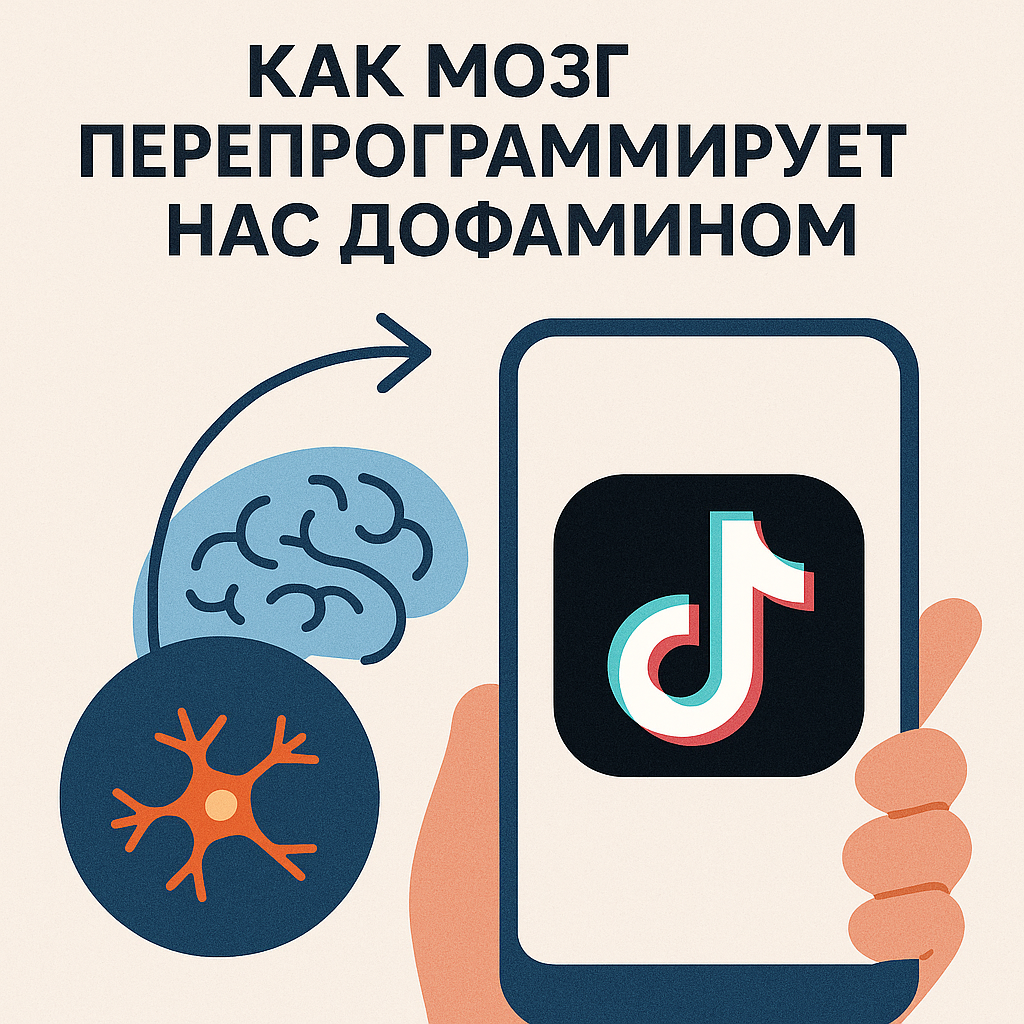 📱 Почему мы залипаем в TikTok: как соцсети перепрограммируют наш мозг Ты берёшь телефон «на минутку», чтобы проверить одно уведомление. Проходит полчаса. Ты уже в TikTok, смотришь, как кто-то ест, танцует, объясняет «психологию бывших»… Почему соцсети так сильно нас затягивают? Ответ — в дофамине и работе системы вознаграждения мозга. Разбираемся, что происходит внутри тебя, когда ты не можешь оторваться от ленты. 🧠 Что такое дофамин — просто Дофамин — это нейромедиатор, химическое вещество, которое вызывает предвкушение награды. Он не про радость, а про мотив “получить что-то классное”. Каждый раз, когда мозг ощущает шанс на что-то приятное, он выбрасывает дофамин — и ты чувствуешь: «О! Надо посмотреть ещё!» 📲 Почему TikTok и Reels — как игровые автоматы Алгоритмы TikTok, Instagram и YouTube устроены так, чтобы постоянно подкидывать что-то новое, неожиданное и эмоциональное. Это вызывает: 📉 В чём подвох ✅ Как вернуть контроль 🧩 Вывод Соцсети не «зло». Но их нужно перестать