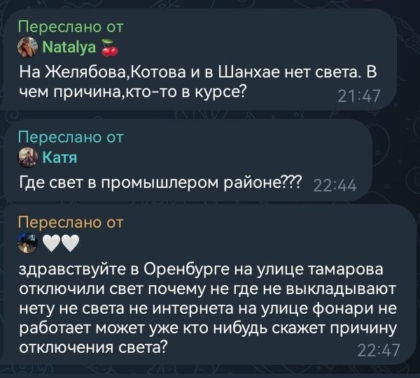 В Промышленном районе нет света, поступают жалобы от оренбуржцев