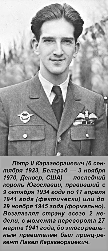 Возглавивший переворот Душан Симович стал главой правительства Югославии, потому что семнадцатилетний Пётр ещё не достиг совершеннолетнего возраста.