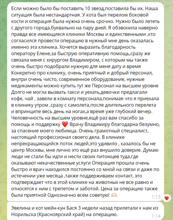 Эвелина и её роскошный мейн-кун Бася проделали долгий путь из Норильска, чтобы доверить нам самое ценное — здоровье любимого питомца. У Баси был сложный перелом, требовавший срочной операции, а времени на поиски клиники почти не оставалось… Но, как говорит сама Эвелина: «Если можно было бы поставить 10 звёзд, я бы поставила!» 🌟 Спасибо за такие тёплые слова! Для нас важно не только профессионально помочь, но и окружить заботой каждого, кто к нам обращается — даже если это значит угостить кофе после долгого перелёта или поддержать на всех этапах лечения. Отдельный респект нашему хирургу Владимиру — за мастерство и чуткость, и Елене на связи — за оперативность и внимание к деталям! 💙 Бася уже на поправке, а мы снова убедились: ваше доверие — наша главная награда. Спасибо, что выбираете нас, даже если для этого нужно лететь через полстраны! ✈️🐾 P.S. Держим кулачки за полное восстановление Баси! И ждём вас (но уже просто в гости — без переломов)! 😉 📍 Клиники "ВетерОК":