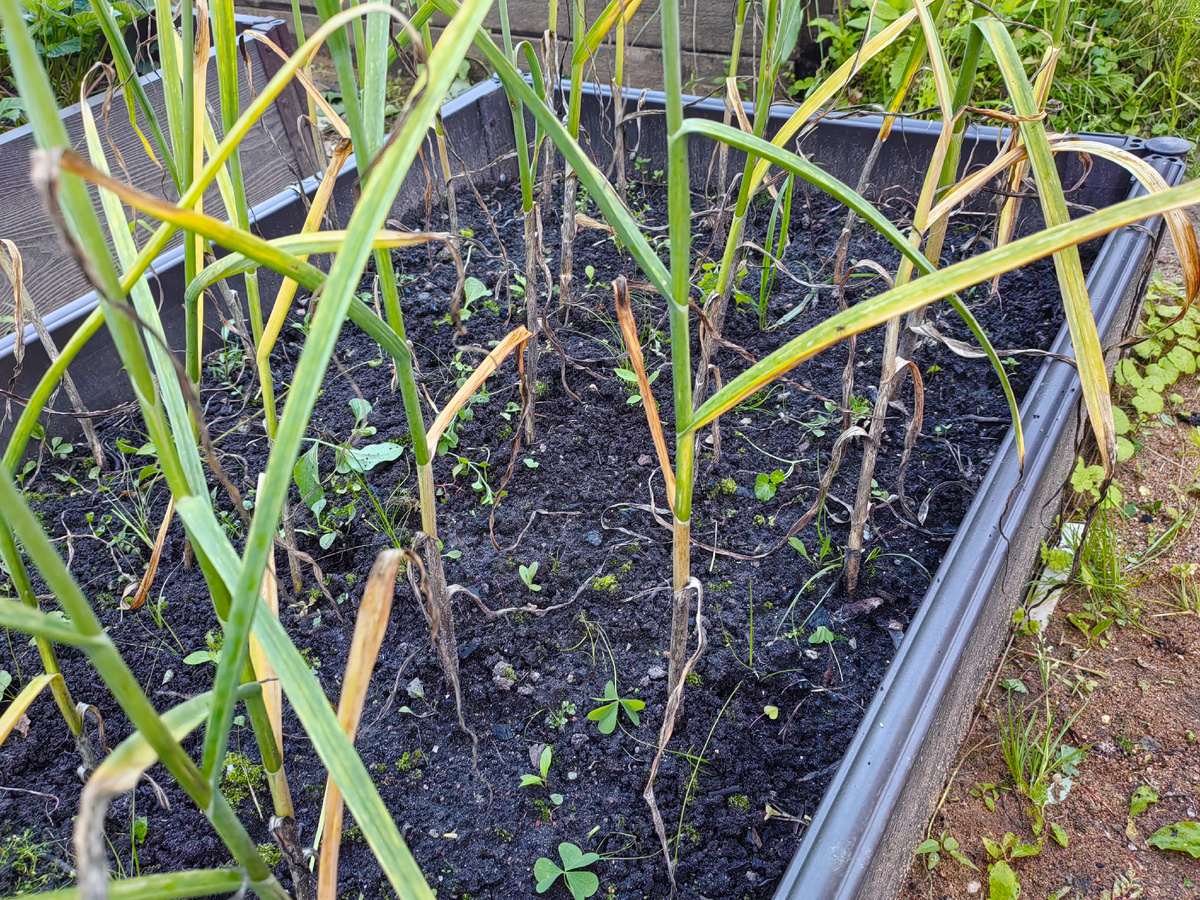 Атлантический циклон вымочил мои грядки как раз тогда, когда делать это не следовало. В итоге и чеснок, и лук несколько дней буквально плавали. И тут ничего не сделать – дождь шёл за волной волна, практически без перерывов, превращая дорожки в реки, а лужайки в озерки.