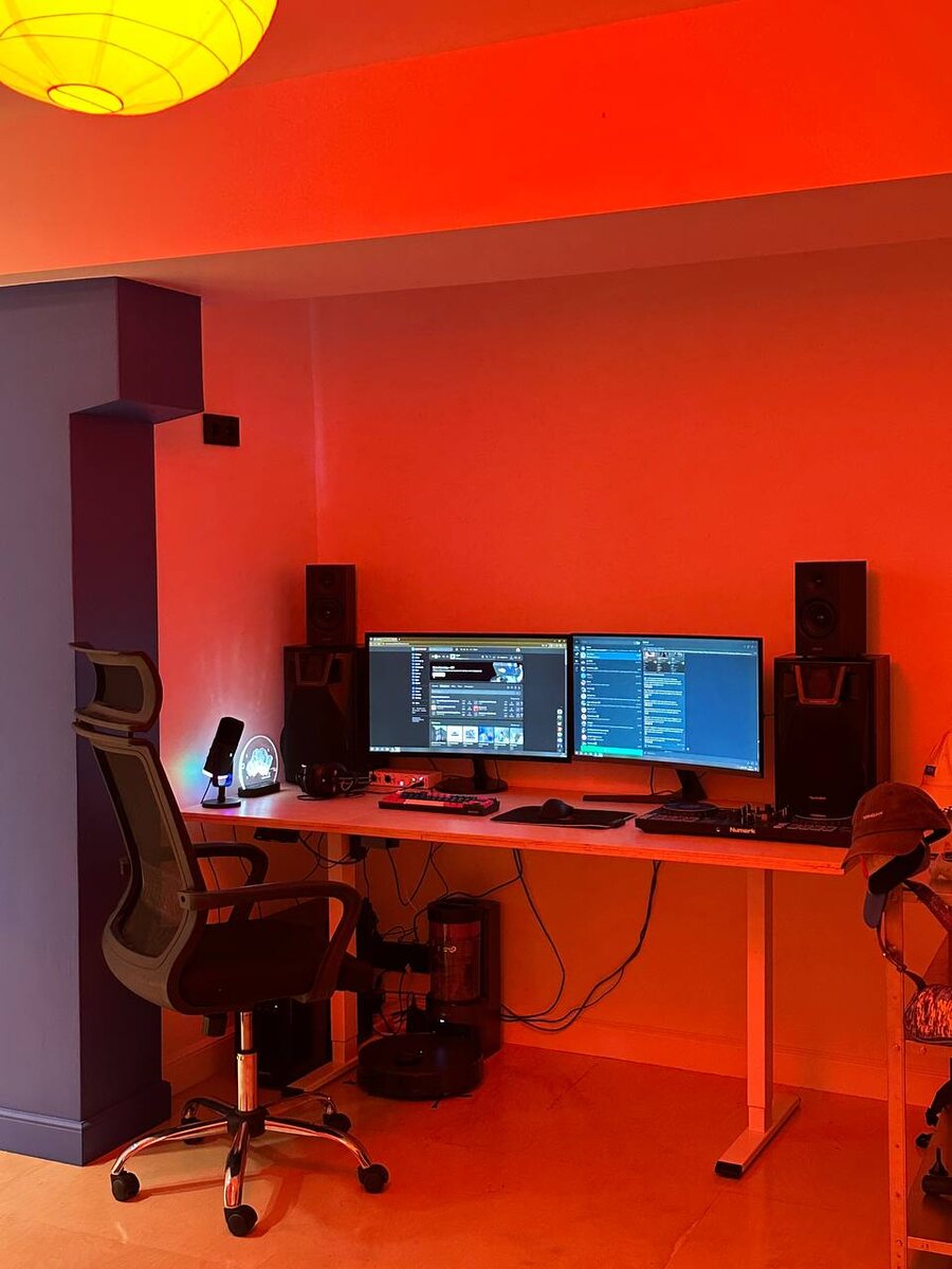 Ремонт: рабочая зона Сегодня был суперпродуктивный день. Особенно из-за сборки рабочей зоны. Наконец перевез комп и все принадлежности, раз уж доделал стол. На удивление, даже такая большая столешница недостаточно большая, но все равно получился очень здорово и тактильно приятно из-за дерева. Особенно доволен глубиной стола, реально нужны глубокие столы, а не эти недоразумения, которые ставят все дома и в офисах. Привод подъема - классная игрушка. Интересно, как часто буду этим пользоваться. Но по крайней мере диджеить стоя удобнее. Перерыв в месяц без компа и какой либо деятельности на нем закончен, ура! P. S. Колонки Technics очень старые, это еще мамины, им лет наверное сколько и мне. Пылились дома у нее, привез вот, буду реанимировать. Да и выглядеть они классно. P. P. S. Надо купить органайзеры для проводов, чтобы этих лохмотья так стремно не висели.