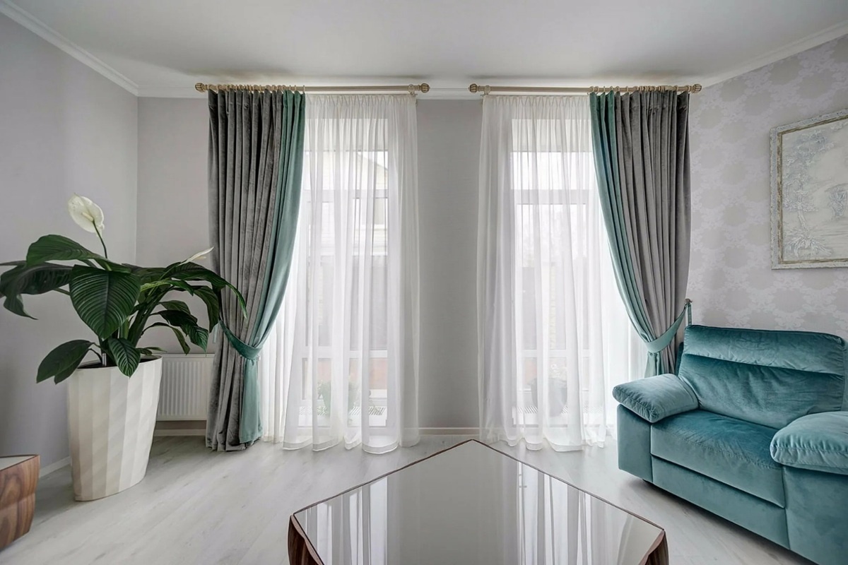 Внимание! При использовании разных по плотности штор надо помнить, что задача объединить комнату в единый гармоничный интерьер сохраняется. Поэтому надо выбирать ткани одного цвета, или комбинировать их так, чтобы визуально портьеры выглядели одинаковыми.