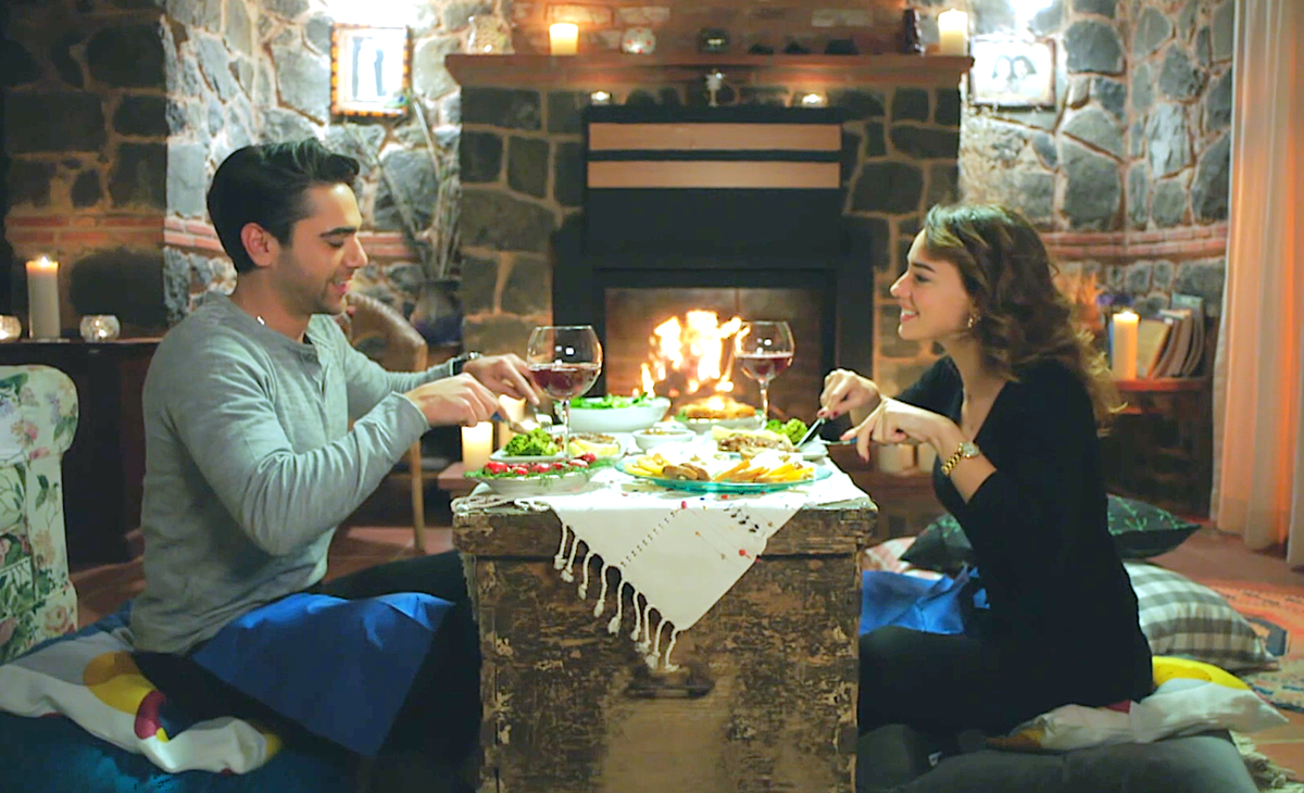 В общем, смотреть любопытно. Вот предлагаю такой кадр Вашему вниманию. Обратите внимание на полёт телефона справа от Берны над тумбочкой. Альпер кинул им в жену. Он тут доведён до предела.