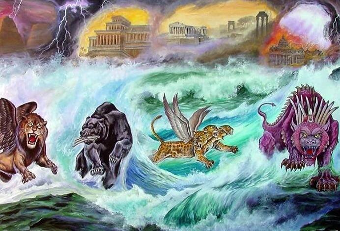 Когда Даниил смотрел на море, оно было возмущаемо четырьмя небесными ветрами. Затем из моря вышли чудовища, невиданные ранее. Каждый из этих четырех огромных зверей, которые вышли из моря, отличался друг от друга. Поскольку эти звери являются важными для понимания этого видения, нам следует рассмотреть каждого из них.