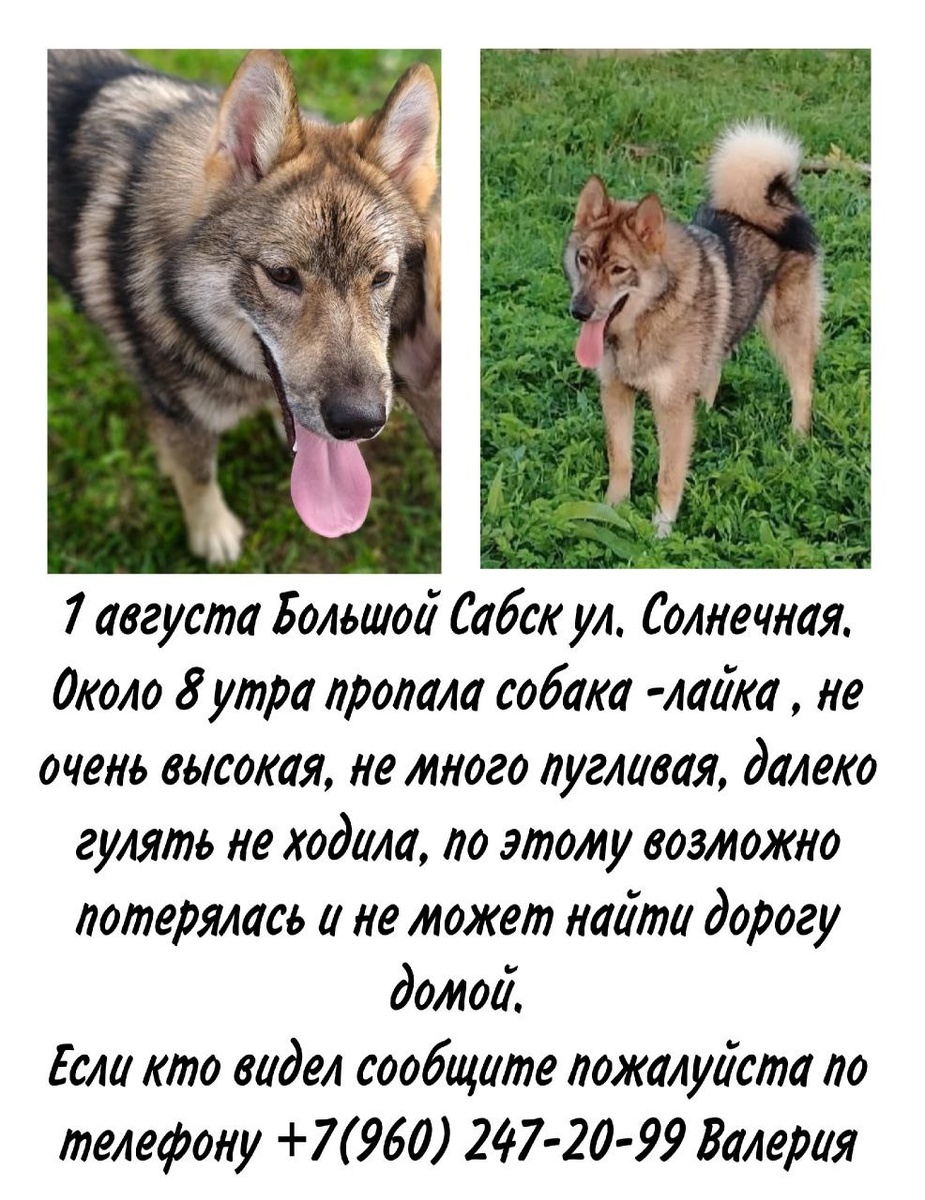 Наша собака так и не нашлась, обошли соседние участки, посмотрели ямы и колодцы вокруг-тишина. Ощущение что её могли увезти( лает она звонко и громко) а пропала тихо. Около 8 утра муж выпустил двух лаек побегать на участке, через пару минут окринул, одна тут же прибежала, вторая пропала, до сих пор не вернулась, такого никогда не было , по этому паникуем. Отдельная просьба к водителям, начались выходные будьте пожалуйста аккуратнее за рулём, не гоняйте по деревне, вдруг где выскочит из кустов и не успеете затормозить ☹️ За любую информацию будем благодарны, можно написать мне Наталья Коробач или позвонить Валерии Коробач по номеру +7 960 247 20 99