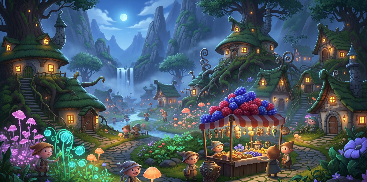 Через несколько минут, обогнув огромный дуб, герои оказались на небольшой поляне. Там, словно сошедшая со страниц сказки, стояла деревня. Домики были сделаны из дерева и глины, с округлыми дверями и окнами, а их крыши были покрыты мхом. Маленькие фигурки людей сновали туда-сюда, занимаясь своими делами: кто-то чинил крышу, кто-то нёс охапку хвороста, а дети с криками гонялись за весёлым котёнком.