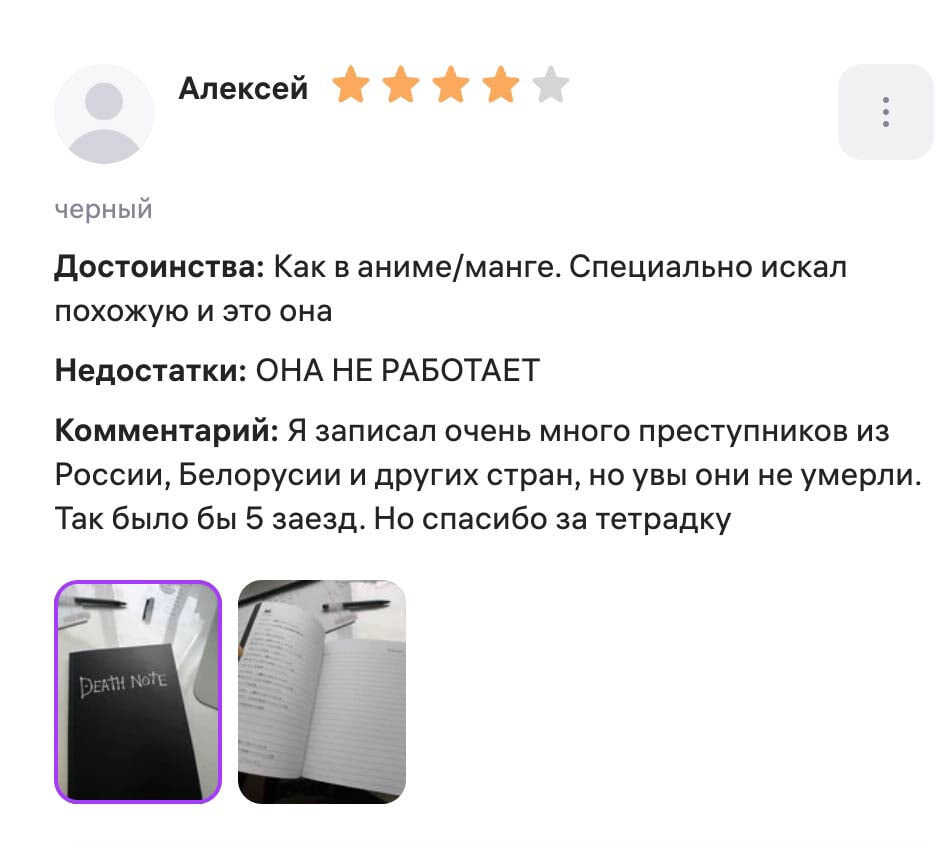 Парень купил «Тетрадь смерти», но разочаровался: она не работает и никого не убивает