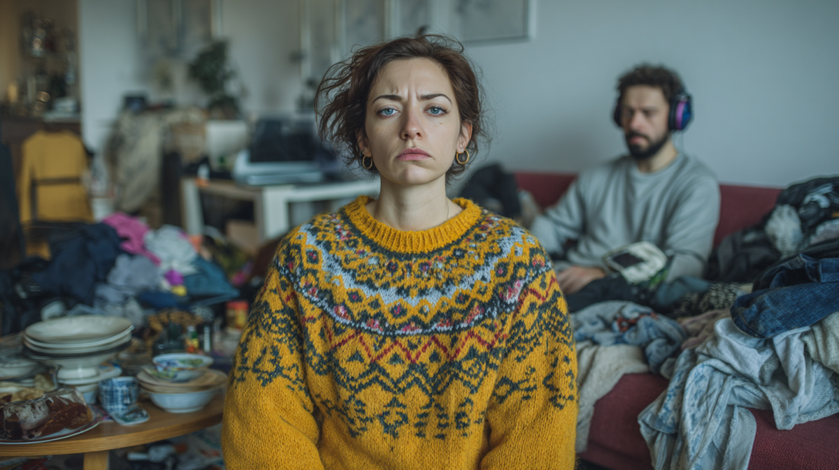 Ольга стояла в дверях и чувствовала, как внутри закипает гнев. Дом превращен в свинарник, а муж спокойно играет в игры, словно это не его проблема.