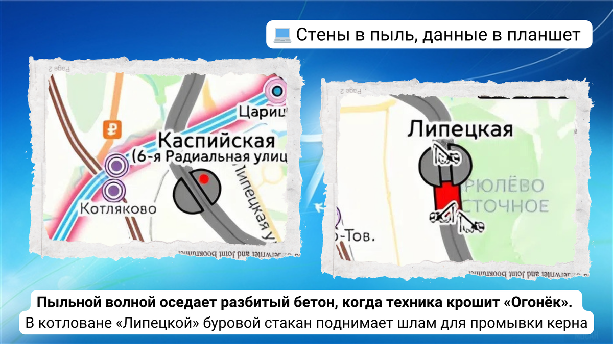 официальные отчеты. Давайте вместе разберемся, что же на самом деле происходит с нашей Москвой. Поехали? Во-первых, сообщаем, что продолжается активный снос строений завода «Огонёк», попавших в зону строительства 🚇 станции «Каспийская» 🏭 Бирюлëвской линии. Параллельно ведут работу буровые геологоразведки. Во-вторых, спешим сообщить, что продолжается георазведка на площадке строительства станции 🚇«Липецкая» 🏭 Бирюлëвской линии. В месте расположения будущего станционного котлована продолжаются активные работы бурилок. -------------------------------------------------------