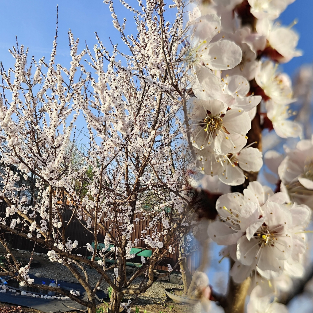В этом году наконец–то мы дождались урожая абрикосов. Долгожданные пять лет пролетели быстро, а дерево с каждым годом становилось все больше. Цвести стало на третьем году жизни, но плодов не было. Последние 2 года дерево совсем не цвело, по–видимому заморозки повлияли. Моему терпению пришел конец. Я не выдержала осенью и сказала на семейном совете: – Не будет цвести – спилим, выращивать листву больше не будем. Вау!!! Неужели дерево испугалось? Такое может быть? Весной дерево было все в цвету. Плодовый сад только просыпался, а абрикос радовал пышным цветением. Я в недоумении: – Неужели будут плоды? Но если не будет я сдержу свое обещание и пойдет на дрова. Многие говорили мне, что выращивать абрикос – это баловство, плоды даёт не каждый год. Поживем , увидим! С каждым разом проходя мимо абрикоса я осматривала дерево. И, вдруг заметила что стали завязываться горошинки. И впрямь испугала дерево🫢 Зелененькие плоды стали увеличиваться в размере, напитались солнечными лучами, появились