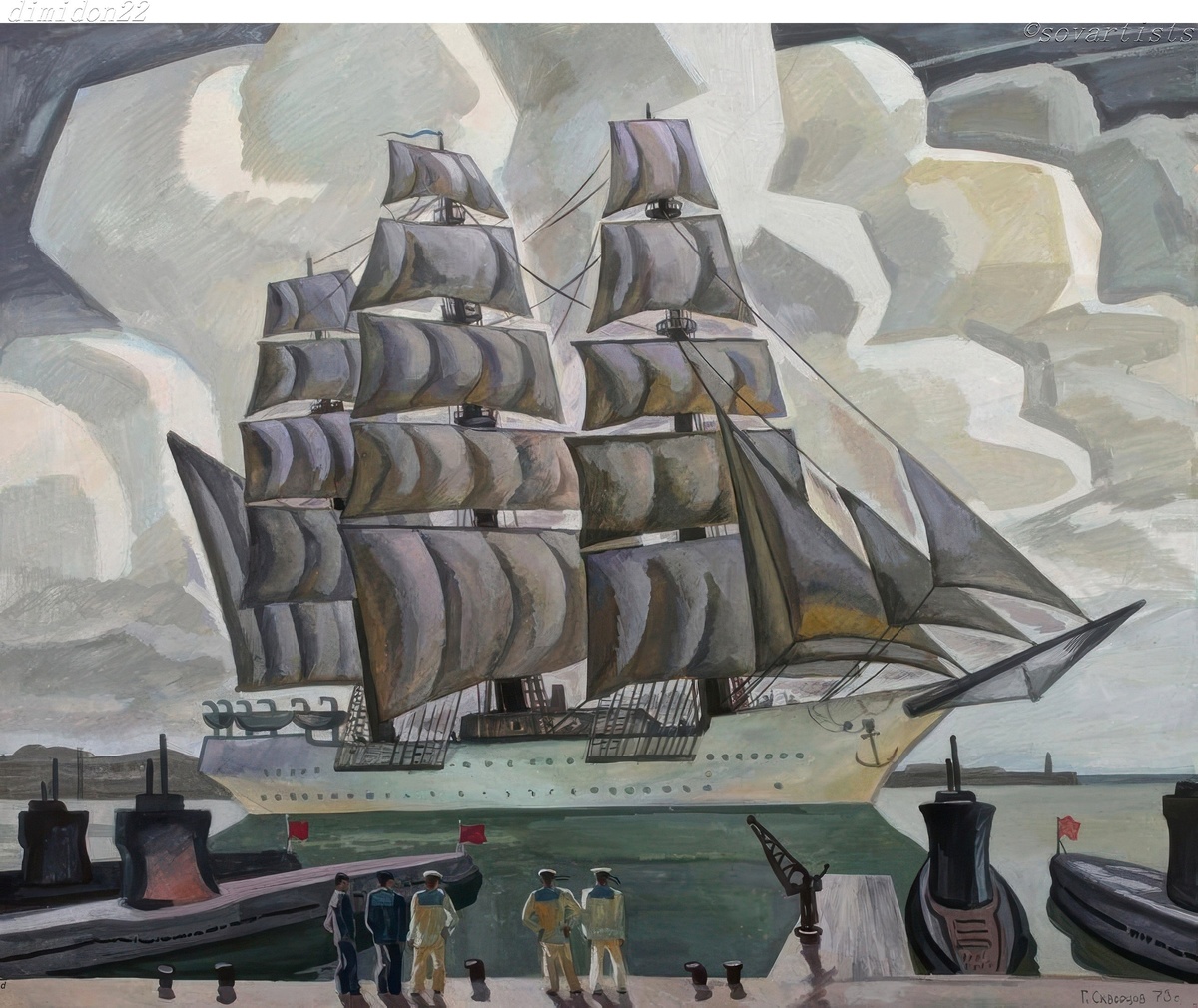 Скворцов Геннадий Фёдорович (р. 24.10.1934, Спасск-Татарский Татарской АССР). «Счастливого плавания». Из серии «Севастополь». 1973 год. Картон, гуашь; 615 х 715 см.; (Севастопольский художественный музей имени Михаила Павловича Крошицкого).