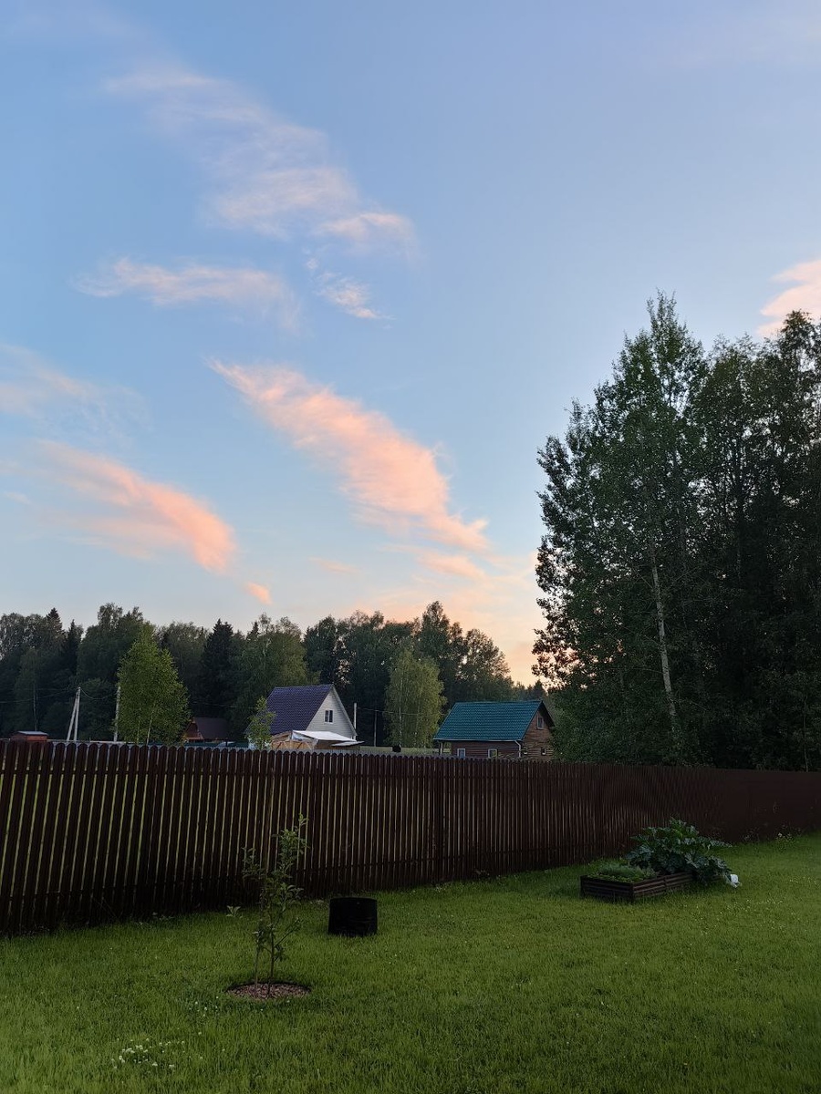 Вечерний сельский пейзаж, розовые облака (Комарово, Клин) #sky #blue #sunset #reflections #pink #clouds #rural #landscape #Komarovo #Klin #summer #July #небо #голубое #закат #отсветы #розовые #облака #сельский #пейзаж #Комарово #Клин #лето #июль