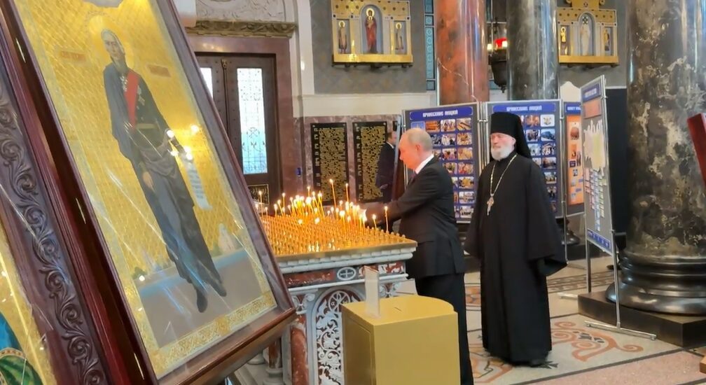 Прихожане встретили Путина в Морском Никольском соборе в Кронштадте