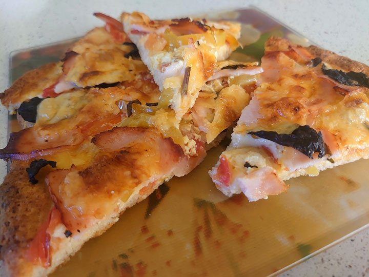 Основа: ✔ Творог 5% - 180 г; ✔ Желток яичный - 1 шт.; ✔ Мука из спельты/полбы - 1 ст. л.; ✔ Соль, специи - по вкусу; ✔ Масло растительное - 1 ч. л. Начинка: ✔ Помидор - 1 шт.; ✔ Индейка отварная -100 г; ✔ Перец болгарский – половинка; ✔ Базилик свежий - по вкусу; ✔ Сыр - 100 г. Творог, желток, соль, специи смешать, добавить муку и растительное масло, Тесто отлично собирается в «колобок». Выложить тесто на пекарскую бумагу, раскатать в нужную толщину и диаметр. Смазать слегка растительным маслом основу пиццы. Выложить сыр, помидор, перец, мясо, базилик и ещё раз сыр. Я просто измельчаю ингредиенты ножом произвольно. Выпекать в духовке при температуре 190° 25 минут. КБЖУ на 100 г - 143/15,7/7,9/3,3. + 3 фото Рецепт на странице Автор рецепта – Галина Сасыкова Расчёт КБЖУ сделан с помощью Telegram-чат-бота https://t.me/vesipitaniebot © Почтенный возраст Online и Рецепты для диабетиков