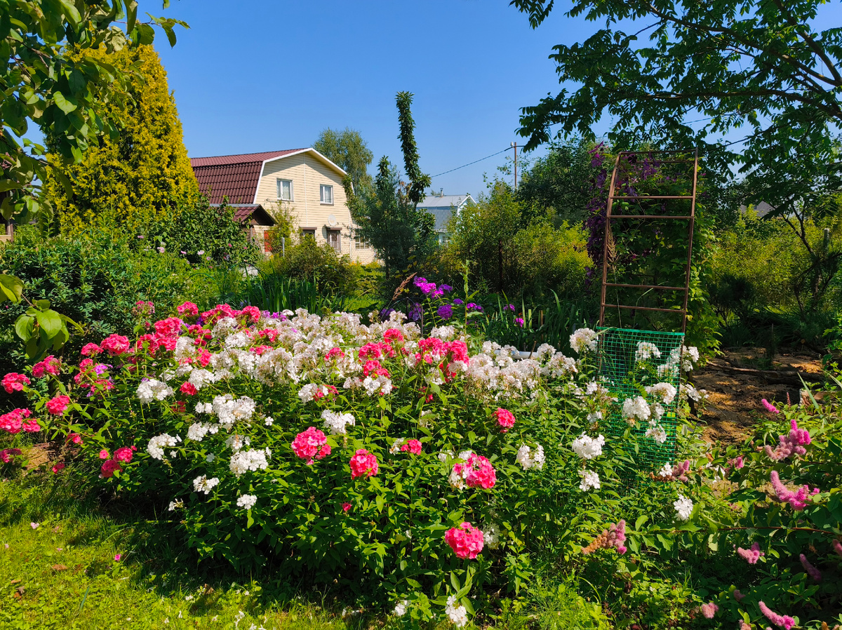 Две недели отпуска это очень хорошо - путешествия, впечатления... А вот возвращение на фазенду после такого перерыва - это всегда волнение и такие же впечатления от увиденного. Ехала на дачу с тревожной мыслью "как там моё всё" Ехала на дачу без каких-либо тревожных мыслей - главное, что бы дом выстоял нашествие друзей сына, а сад - дело поправимое. Вошла в сад - не так все и страшно. Флоксы цветут Клематис цветет и даже уже частично отцветает Гортензии более-менее цветут. Не скажу, что шапки стволы ломают, но красиво. Видно издалека . Гиппеаструм, высаженный на лето в землю, активно цветет и его детка под бочком у мамы подросла прилично. Золотистый шарик туи светится с высокой лесной клумбы Все мои новые хвойные , высаженные перед отъездом , прекрасно принялись. Во всяком случае , никакой болезненной желтизны или отсушивания хвои я не увидела В прудике зацвела одна нимфея Из "срочно полоть" - огород и одна длинная цветочная рабатка. В огороде тесно посажены помидоры. Вроде и са