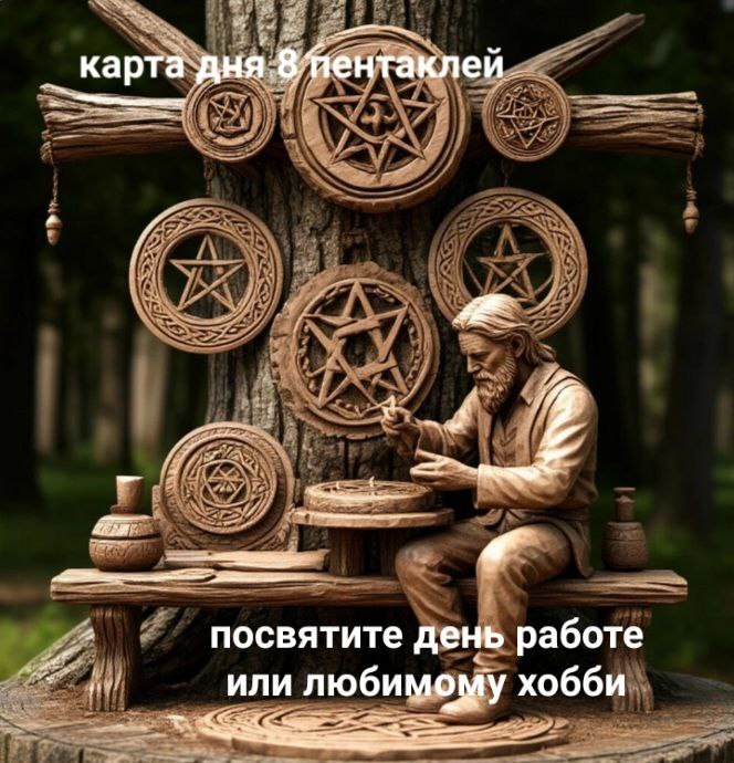 Карта дня 8 пентаклей Посвятите день работе, упорному труду. Всё за что не возьмётесь сегодня принесёт пользу, нужно лишь вложить душу и опыт. Всем прекрасной новой рабочей недели! (А кто отдыхает, тому отсутствия вестей с работы)) пусть отдых удастся!)