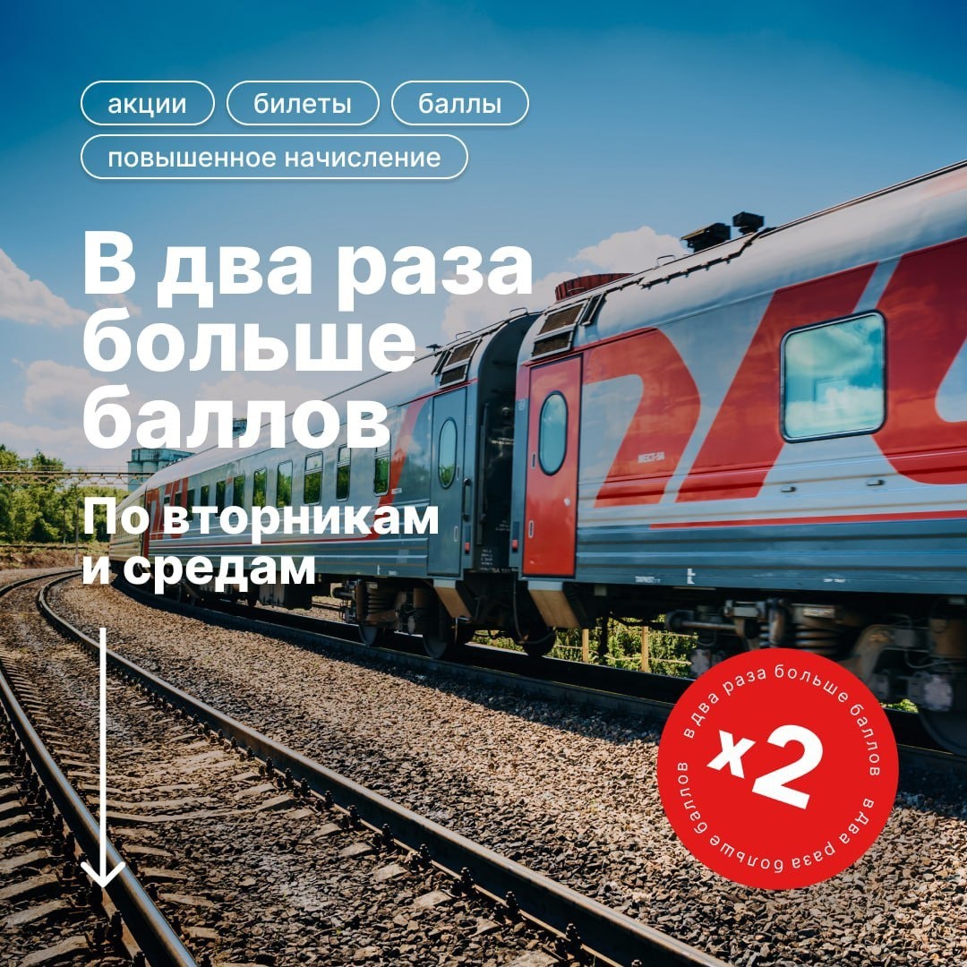 ✏️ В РЖД: Двойные баллы во вторник и среду: выгодные дни для путешествий.