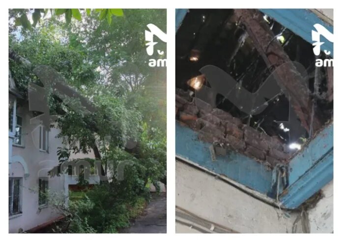 Рухнувшее дерево проломило крышу многоквартирного дома в Хабаровске