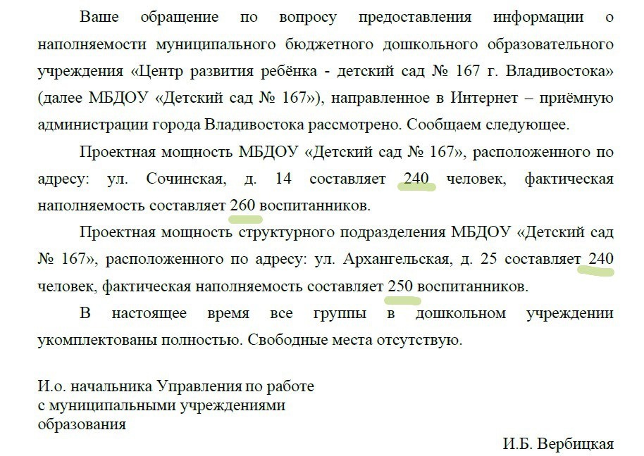 Согласно ответа мэрии оба детсада на Патрокле фактически переполнены, а это значит, что у них есть все основания делать на Сочинской 17