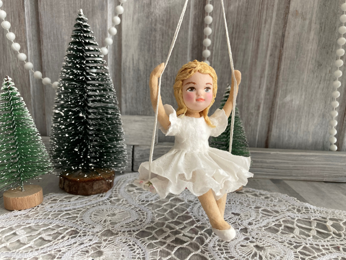 Маленькая куколка на качелях, по мотивам картинки из интернета, сделанная своими руками, теперь достойное украшение вашей новогодней елки.