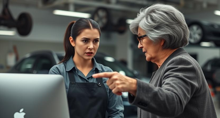 Елена как раз принимала клиента — солидного мужчину, который привёз дорогую машину на диагностику.