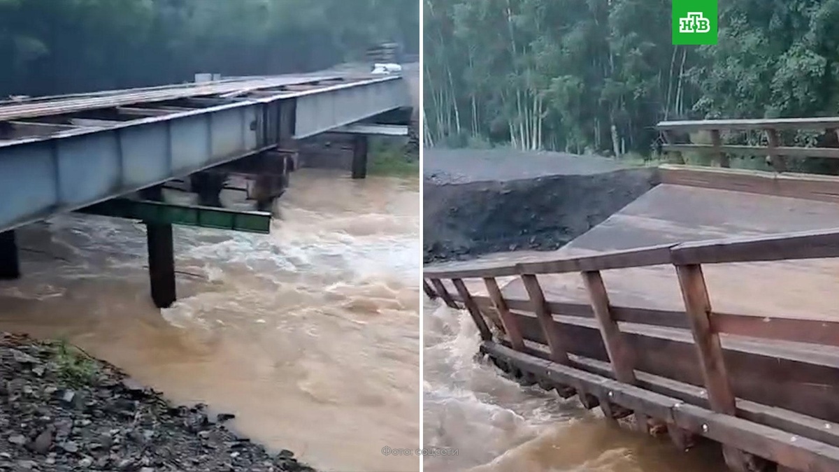 [ Смотреть видео на сайте НТВ ] Паводок разрушил объездной мост на трассе Хабаровского края. В Хабаровском крае рухнул объездной мост на автодороге, связывающей село Селихино и город Николаевск-на-Амуре. Как сообщили в региональном Минтрансе, движение транспорта ограничено на участке с 60-го по 105-й километр. На месте происшествия работают специалисты. В регионе устраняют последствия циклона, бушевавшего в ночь с пятницы на субботу. По материалам: Telegram-канал Минтранса Хабаровского края. [ Смотреть видео на сайте НТВ ]