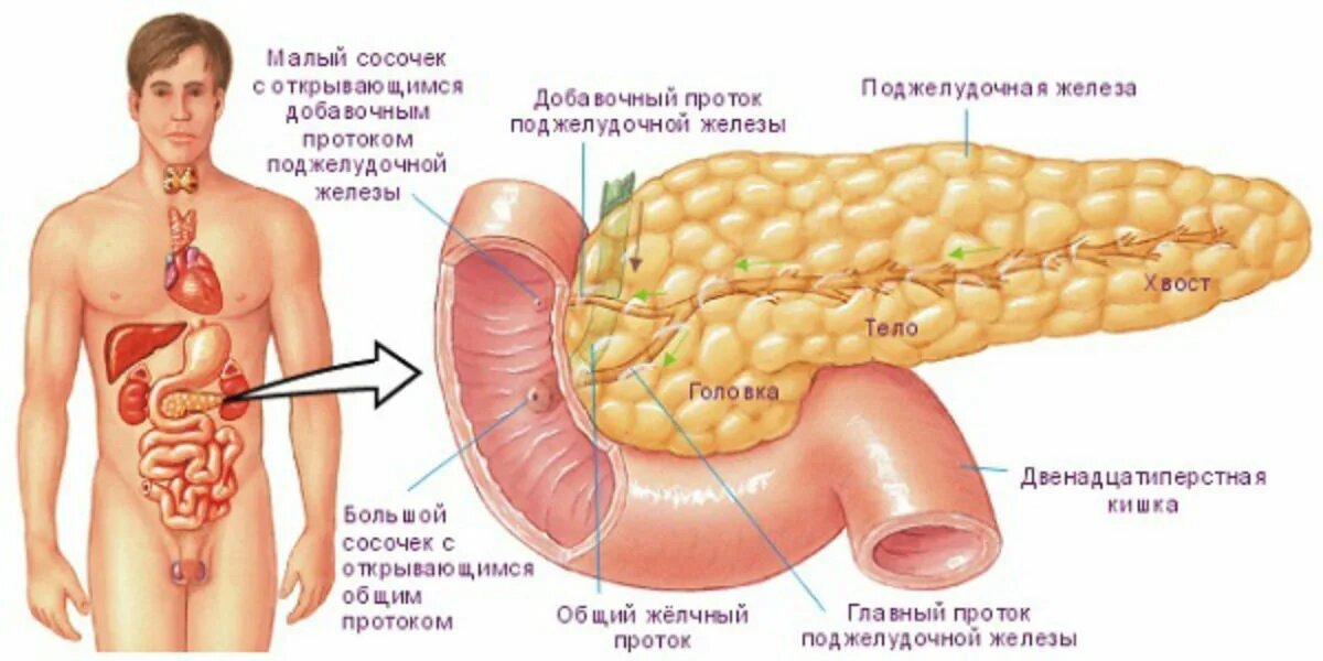 Итак: поджелудочная железа (ПЖ) -это небольшой, но крайне важный орган, расположенный в брюшной полости за желудком. Она уникальна своими двумя функциями: 1-экзотринная (выработка ферментов для переваривания пищи), 2-эндокринная (регулирует уровень сахара вырабатываемым инсулином) Этот гормон, инсулин, способствует проникновению глюкозы внутрь клетки.