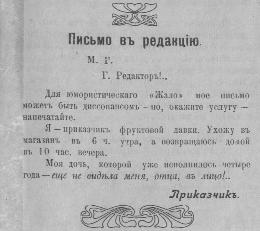 В разделе «Говорят» журналисты метким словом подмечали разные курьезы и необычные ситуации, происходившие в Иркутске и губернии в начале ХХ века: 👉 «Говорят, что г. Саракер, помимо его “плодотворной деятельности” на черемховском заводе, так же “плодотворно работал” и у К-о Зингеръ, уволившей его “за небрежное обращение с деньгами”…» 👉 «Говорят, что представитель одного молодого средне-учебного заведения занялся довольно оригинальной для “педагога” деятельностью, а именно: среди учебного года начал “переманивать” к себе преподавателей из другого учебного заведения, обещая лишние сто-двести рублей в год. Хороший педагог, нечего сказать! Хотя эту педагогическую деятельность ему “навязали”, а так-то он специалист по другой части!…» и др. Присылали в «Иркутское жало» свои обращения и простые граждане. Второе фото в этой публикации – скриншот одного из них. Настоящий крик души! 😓 Использованы материалы электронной библиотеки «Хроники Приангарья»: Иркутское жало. 1915. 18 октября.