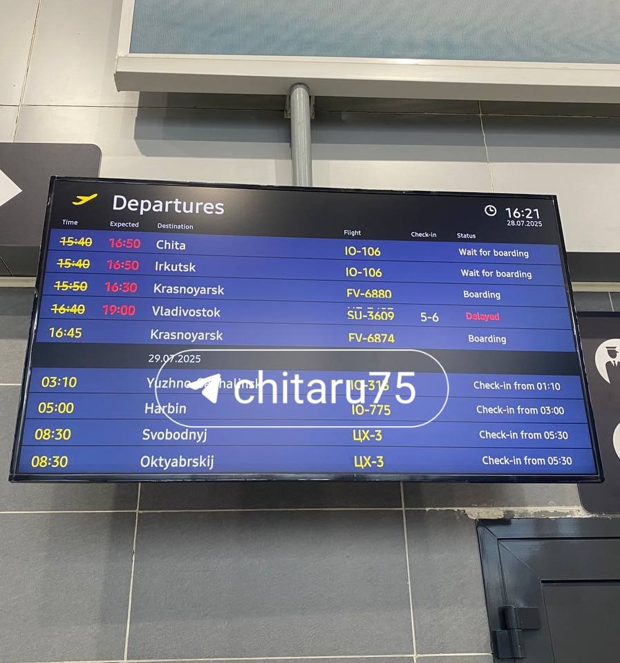 Рейс авиакомпании «ИрАэро», который следует через Читу, задержан в аэропорту Благовещенска. Пассажирка сообщила @chita.ru, что задержка рейса Иркутск — Чита — Благовещенск — Владивосток произошла сегодня из-за сбоя в системе: Нам говорят, что полетела система бронирования, из-за этого массово переносятся рейсы. Я вылетала из Читы во Владивосток рейсом «ИрАэро». Вылет переносили несколько раз, в итоге вылетели на полтора часа позже. В Благовещенск мы прилетели с задержкой, и здесь тоже вылет перенесли. По ее словам, в Благовещенске самолет приземлился в 16:40, вылет перенесли сначала на 18 часов, потом на 19. На табло владивостокского аэропорта указано, что рейс прибудет в 22:25 с опозданием на 2 часа 20 минут. О задержке других рейсов не сообщается. Получить комментарий авиакомпании пока не удалось. Сегодня же произошел сбой в системе «Аэрофлота». В пресс-службе компании сообщили, что рейсы могут задерживать и даже отменять. 🟦Подписаться | Предложить новость