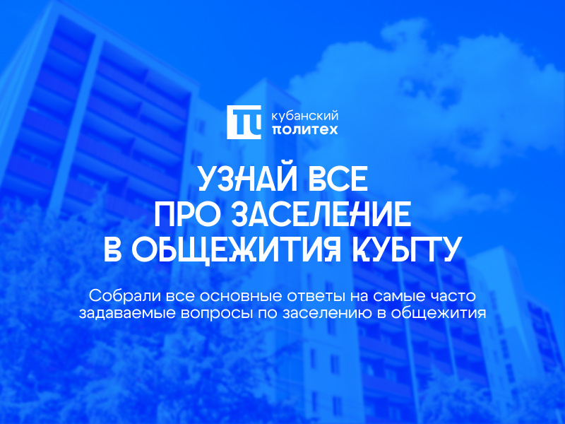 Мы собрали в одном материале ответы на самые распространённые вопросы, касающиеся заселения в Студгородок КубГТУ в 2025 году. • Когда и как подается заявление на общежитие? При подаче заявлений на поступление вы указывали необходимость в предоставлении вузом общежития. После зачисления нужно принести все документы, необходимые для заселения. Если вы не указали необходимость в общежитии, то нужно написать заявление в Студгородке (ул. Московская, 2, общежитие №3). • Кто заселяется в первую очередь? В первую очередь обеспечиваются студенты, имеющие одну или несколько льгот. Категории льгот и приоритет указаны на сайте. • Как распределяются студенты по общежитиям? Распределение происходит по институтам. Обычно общежитие находится недалеко