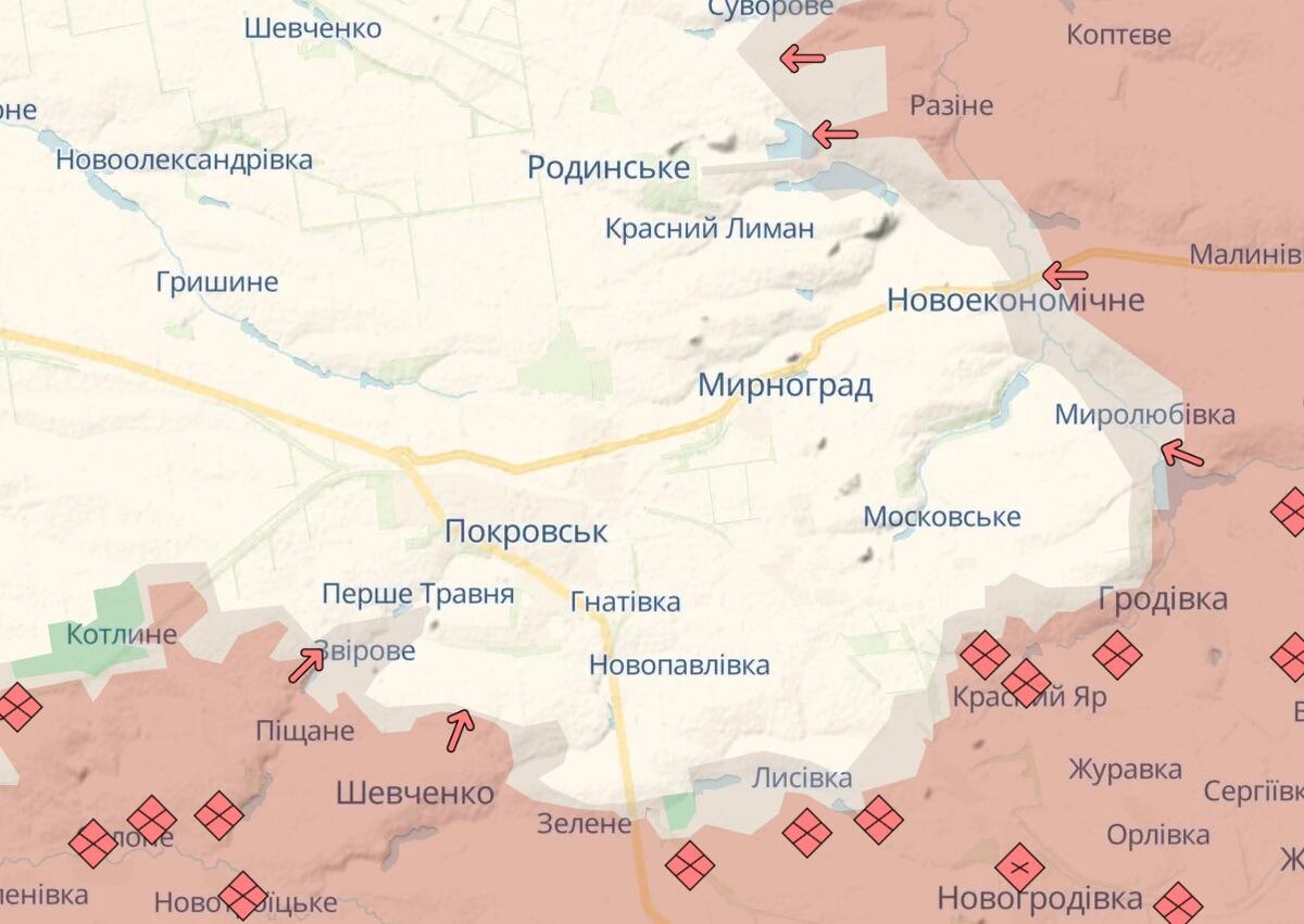 «Самые активные сейчас продвижения наших подразделений зафиксированы на Красноармейском направлении, и мы видим, что после освобождения Новоэкономического, та группировка противника, которая сконцентрирована в Димитрове (Мирноград), в крайне затруднительном положении. И по той информации, которая появляется, уже есть фиксация первых боестолкновений на окраинах и самого Димитрова (Мирнограда), и на окраинах самого Красноармейска (Покровска)», - сообщил глава ДНР.