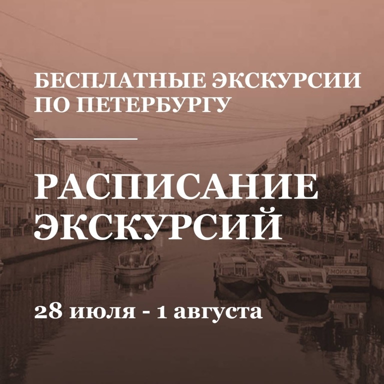 Друзья, расписание: ПЕШИЕ ЭКСКУРСИИ: Запись — > https://clck.ru/3NKEN9 28 июля (понедельник) Бесплатные: 12:00 — 13:10 "Симфония площади Искусств" 13:00 — 14:30 "Имперская Лиговка. По соседству с греками" 15:00 — 17:00 "Модерн на Каменноостровском проспекте" 16:00 — 17:30 "История одной версты Петергофской дороги. Прогулка по проспекту Стачек" 17:00 — 18:30 "Истории вокруг Астории" 18:00 — 19:30 "Белые ночи Царского Села трех императриц" 29 июля (вторник) Бесплатные: 11:30 — 13:00 "В ожерелье площадей" 11:30 — 13:10 "Тайны короны или запретные страсти великих" 13:00 — 15:00 "Задворки княжеских мазанок. Улица Галерная" 14:00 — 16:00 "По тихим улочкам Коломны..." Часть 2 14:00 — 15:30 Премьера! "Парголовская жемчужина" 15:00 — 17:00 "Остров поэтов. Серебряный век на Васильевском" 16:00 — 17:30 "Нарвская застава на перекрёстке эпох" 19:00 — 20:40 "Улица Большая Конюшенная – знакомая и такая неожиданная" Платные: 15:00 — 16:30 "Музей-квартира семьи Бенуа (с мини-концертом на арфе)" 18: