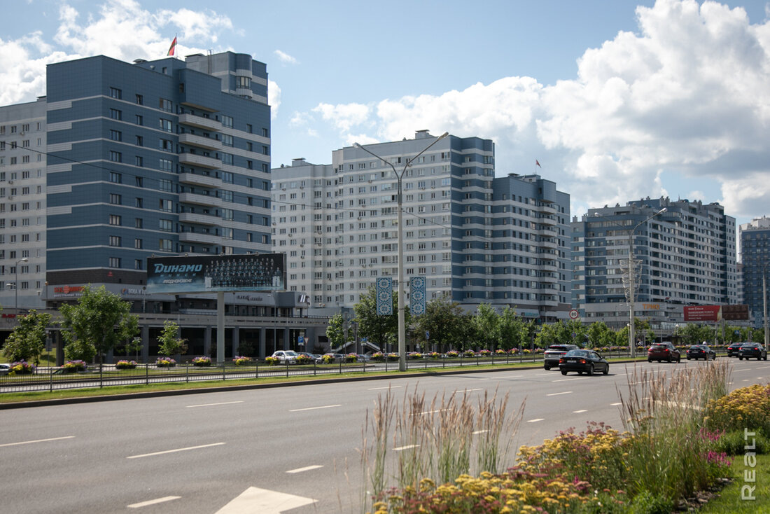 С учетом близкого расположения Свислочи, одним из любимых мест для прогулок является набережная. Для детей около домов обустроены детские площадки. По правде говоря, разнообразием качель могут похвастаться не все дворы. Например, в доме №127, что стоит поперек проспекта, детская площадка построена на стилобате. В час-пик там не было ни одного ребенка. Хоть дом и вместительный, выглядит пустым и одиноким. Не хватает тут не только детей, но и зелени.