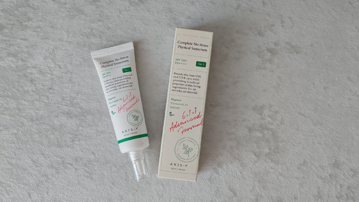 AXIS‑Y Complete No-Stress Physical Sunscreen V.3 по описанию подходил идеально: non‑nano цинк, no white cast, увлажнение, защита от HEV, никаких эфирных масел… мечта, а не баночка.