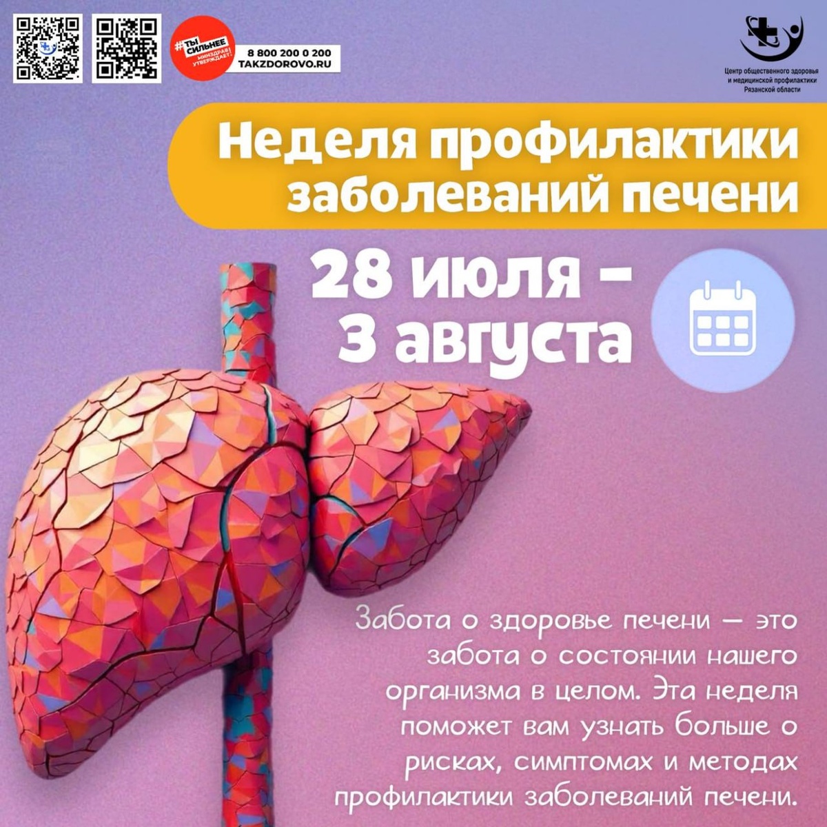 🧬 Стартовала Неделя профилактики заболеваний печени! ❓Почему это важно? Каждый третий россиянин имеет жировую болезнь печени (НАЖБП), часто — без симптомов! ❓Что убивает вашу «химическую лабораторию»? • сахар и трансжиры: Фастфуд запускает воспаление → фиброз • Алкоголь: Всего 30 г/день (бокал вина!) ускоряет цирроз в 3 раза • Парацетамол: Передозировка — причина 46% острых поражений печени Сигналы SOS от печени: ➠ Желтизна кожи/глаз ➠ Тяжесть в правом боку ➠ Постоянная усталость 3 шага для защиты уже сегодня: 1. Кофе 2 чашки/день: Снижает риск фиброза на 44% (исследование Hepatology) 2. Зелень на ужин: Руккола + шпинат выводят токсины 3. Анализ крови раз в год: АЛТ, АСТ, ГГТ — маркеры здоровья печени Печень молчит, пока не кричит от боли. Не ждите симптомов — действуйте!» #ЗдоровьеПечени #Детокс #Профилактика #ЗОЖ #НЖБП #ЗдоровоеБудущее62