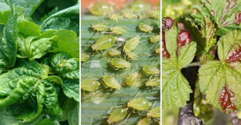 Эти бугорки сначала зеленоватые, потом становятся красноватыми или коричневыми. Именно из-за этих признаков галловую тлю часто путают с грибковыми заболеваниями или солнечными ожогами, особенно на красной смородине. Но внимательный взгляд отличит вредителя — если заглянуть под лист, можно заметить мелких зеленых или желтоватых тлей.