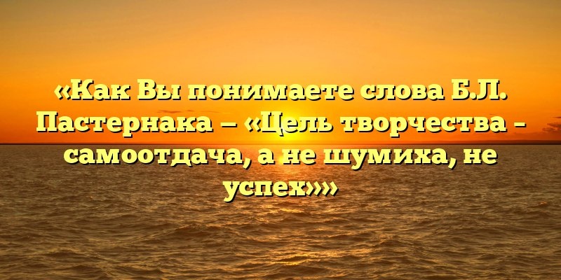 «Как Вы понимаете слова Б.Л. Пастернака — «Цель творчества – самоотдача, а не шумиха, не успех»» 7 лучших сочинений на тему «Как Вы понимаете слова Б.Л. Пастернака — «Цель творчества – самоотдача, а не шумиха, не успех»» Публикуем свежие сочинения 2025 года по теме «Как Вы понимаете слова Б.Л. Пастернака — «Цель творчества – самоотдача, а не шумиха, не успех»». «Как Вы понимаете слова Б.Л. Пастернака — «Цель творчества – самоотдача, а не шумиха, не успех»»: Вариант 1 Я думаю, что Борис Леонидович Пастернак, известный русский поэт и писатель, имеет в виду, что истинная цель творчества заключается в самоотдаче и вкладе души, а не в стремлении к шумной известности и успеху наружу. В ярком творении русской литературы «Мастер и Маргарита» Михаил Булгаков также подтверждает это понимание. Главный… #Сочинения Подробнее: https://2025.obr.prime-name.ru/literatura/sochineniya/kak-vy-ponimaete-slova-b-l-pasternaka-cel-tvorchestva-samootdacha-a-ne-shumixa-ne-uspex.html