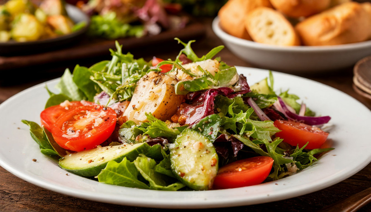 ФРАНЦУЗСКИЕ САЛАТЫ Французские салаты – изысканные рецепты с парижским шармом Французская кухня славится элегантными салатами с простыми, но вкусными сочетаниями. Вот подборка классических и современных вариантов. 1. Салат «Нисуаз» (Salade Ni?oise) Свежий провансальский салат с тунцом и овощами. Ингредиенты (на 2 порции): 100 г консервированного тунца (кусочками) 2 сваренных вкрутую яйца (четвертинками) 8–10 помидоров черри (половинками) 1 зелёный перец (соломкой) 1 красная луковица (тонкими кольцами) 10 маслин без косточек 100 г зелёной фасоли (бланшированной) 2 анчоуса (по желанию) Листья салата (микс или руккола) Заправка: 3 ст. л. оливкового масла 1 ст. л. лимонного сока 1 ч. л. дижонской горчицы Соль, перец, прованские травы Приготовление: 1. Выложите на тарелку листья салата. 2. Разложите ингредиенты аккуратными секторами. 3. Взбейте заправку и полейте перед подачей. Подача: С хрустящим багетом и бокалом розового вина. 2. Салат «Лионский» (Salade Lyonnaise) Тёплый са