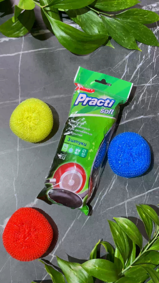 Мочалки пластиковые Paclan Practi Soft из полипропилена идеально подходят для чистки деликатных поверхностей 🔴🟡🔵