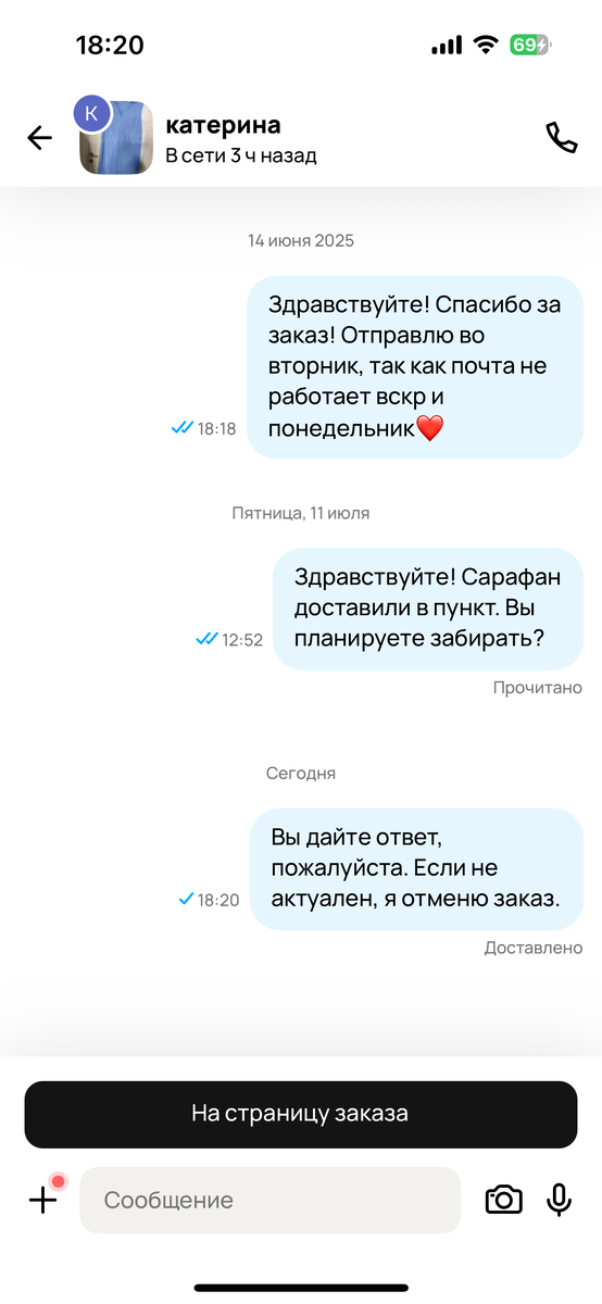 Ранее я писала, что выложила в начале лета на продажу льняные платья в состоянии новых,- сезонный товар! Почти моментально они были заказаны (разными клиентами). Одно доехало без проблем, покупательница осталась довольна, написала благодарность в личные сообщения и даже оставила положительный отзыв! А со вторым платьем начались приключения… Отправила заказ через почту России в другой город, на этапе распределения где-то в Туле мое платье пропало. Спустя неделю, может, чуть больше,- я написала в тех поддержку Авито, мне ответили шаблоном, но уже на следующий день посылку нашли и доставили в пвз. В общей сложности прошел месяц! Я написала клиентке, она прочитала и ничего не ответила. Судя потому что покупательница «не парится» насчет заказа, долгих сроков доставки,- заказывала она явно без внесения предоплаты. Еще одна причина почему не хочется отправлять почтой России- там есть постоплата, которая «расслабляет» клиента. хочу заберу, хочу не заберу Не дождавшись ответа в течение не
