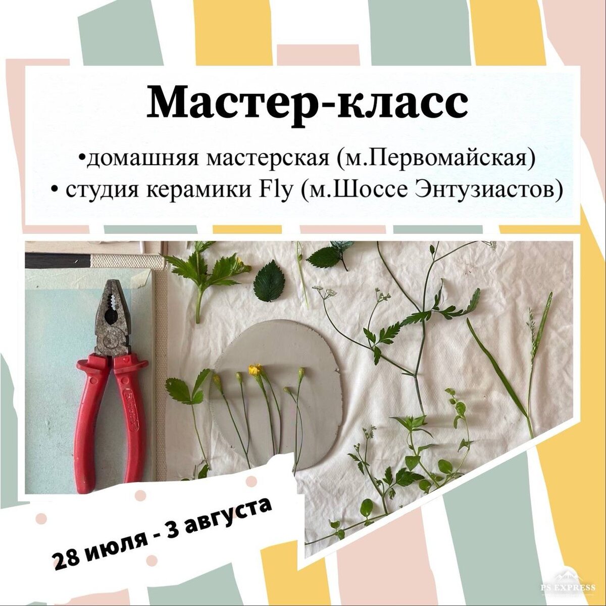Приглашаю на МК по керамике. - домашняя мастерская (м.Первомайская) - 1800₽ - студия керамики Fly (м.Ш.Энтузиастов) - 3000₽ 28 июля - 3 августа В любое удобное для вас время. ✍🏻 3 августа с 15:00 - занято 29 июля с 15:00- занято Записаться можно через личные сообщения.