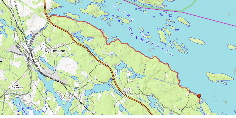 В субботу был мини-поход по тропе Лехмалахти. Расстояние — 15 км, длительность вышла 5 часов хода. Привлек маршрут тем, что на нём были участки, очень похожие на мурманскую природу: скалы, мох, открытое пространство. Тропа находится в 2,5 часах от Питера (61.09303, 30.06562). Вроде расстояние в 14 км — не большое, но когда вышли на тропу, я понял, что будет капец как тяжело. 30 градусов жары, слепни, комары. Тропу тяжело назвать тропой — камни, корни, несколько раз чуть не подвернул ступню. Вид очень живописный, очень много палаточных лагерей, песчаные необорудованные пляжи. Лаки на всём маршруте была в воде — охлаждалась. Спустя 10 км я тоже искупался в бухте. Вода такая тёплая и чистая, был, конечно, поражён. Связь почти не ловит, пару раз сбились с пути. Хотя по карте кажется, что там идти — всё время вдоль берега фигачь. Устали, наверное, уже на 5 км))) Каменистая дорога сделала своё дело. Дальше ощущения уже были похожи на марафон: «Зачем это надо? Хочется пить, устал, жарко, вес