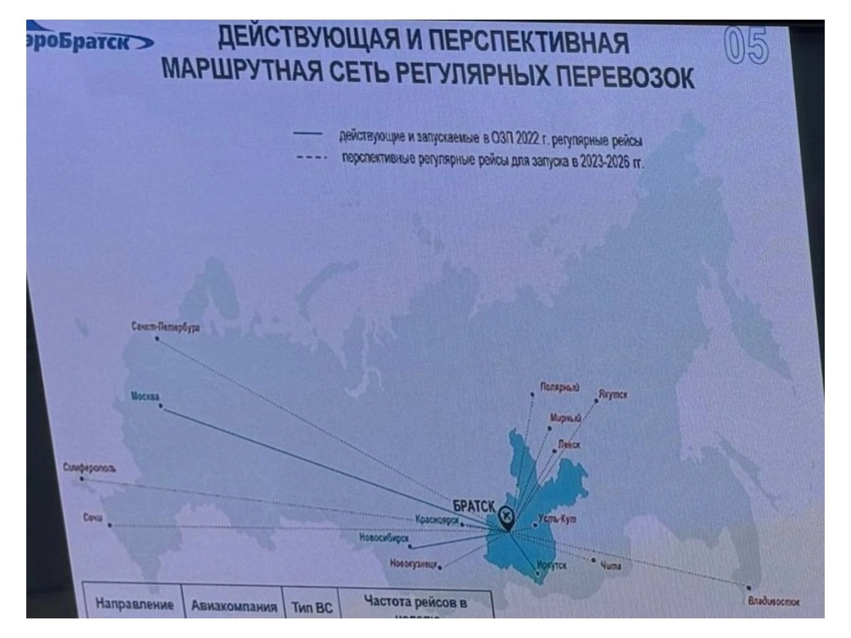 Опубликованы планы по развитию новых рейсов из аэропорта Братска. К популярному у братчан и жителей близлежащих городов рейсу Братск - Сочи может добавится ещё несколько актуальных направлений. Так, аэропортом прорабатываются рейсы в Санкт-Петербург, Владивосток. А какие ещё рейсы вы бы хотели видеть из Братска?